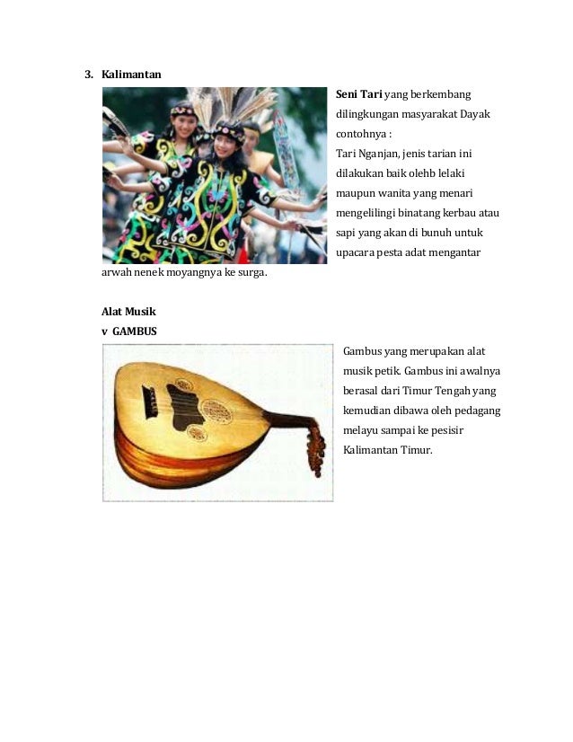Alat musik tradisional indonesia scribd. Sasando berasal dari daerah rote ( nusa tenggara timur ). Alat musik trdisional ini di mainkan denga cara di petik. 7. Talempong. Talempong adalah alat musik tradisional yang berasal dari daerah minagkabau. Alat musik tradisional indonesia yang mirip bonang ini dimainkan dengan cara di pukul. 8. Tambo. Tambo berasal dari daerah aceh. Ini macammacam alat musik petik tradisional dan modern. Alat musik tradisional bernama kecapi ini berasal dari tanah sunda yang telah terkenal di daerah lainnya di indonesia. Kecapi biasanya dimainkan untuk mengiringi musikmusik sunda. Kecapi, berdasarkan bentuknya memiliki dua jenis, yaitu kecapi parahu dan kecapi siter. Alat musik tradisional indonesia scribd. Talempong adalah alat musik tradisional yang berasal dari daerah minagkabau. Alat sampek adalah alat musik tradisional suku dayak kalimantan. Alat musik ini dimainkan dengan cara di petik senarnya. 22. Kesokeso. Alat musik tradisional indonesia yang car memainkanya dengan cara dipetik ini. Sampek (alat musik khas dayak) ~ kanak kutai hulu. · alat musik sape’ yang dimiliki oleh dayak kayaan bentuknya berbadan lebar, bertangkai kecil, panjangnya sekitar satu meter, memiliki dua senar/tali dari bahan plastik. Sape jenis ini memiliki empat tangga nada. Info for all alat musik kalimantan infofromwe.Blogspot. Panting adalah sejenis alat musik gambus yang dimainkan dengan cara memetik senarnya. Panting model ini hampir mirip dengan gambus yang berasal dari arab hanya saja ukurannya lebih kecil. Musik yang dimainkan dengan panting ini awalnya berasal dari daerah tapin. Sampe alat musik tradisional suku dayak di kalimantan. Sampe dalam bahasa dayak di artikan “memetik dengan jari”.Sama seperti namanya, alat musik ini di mainkan dengan cara di petik. Bentuk dari sampe ini sama seperti gitar, namun memiliki gagang yang pendek.Selain itu, senar yang di gunakan biasanya hanya menggunakan 3 4 senar. Datapedia daftar alat musik dan tarian daerah indonesia. 33. Popondi alat musik petik yang berasal dari toraja, sulawesi selatan. 34. Rebab alat musik gesek yang berasal dari jawa barat. 35. Sampek sejenis gitar yang berasal dari dayak, kalimantan. 36. Sasando alat musik petik yang berasal dari nusa tenggara timur. 37. Seluang seruling bambu yang berasal dari minangkabau, sumatera barat. 38. Serunai alat musik tiup yang. 8 alat musik tradisional kalimantan tengah [gambar. Katambung merupakan jenis alat musik perkusi yang berbentik seperti tifa karena badannya seperti gendang dan langsing dengan panjang yang mencapai 75 cm. Alat musik ini digunakan oleh masyarakat suku dayak dan diyakini sudah ada sejak zaman dulu.